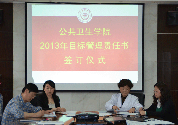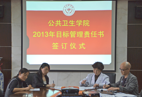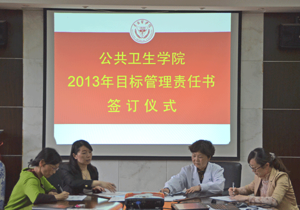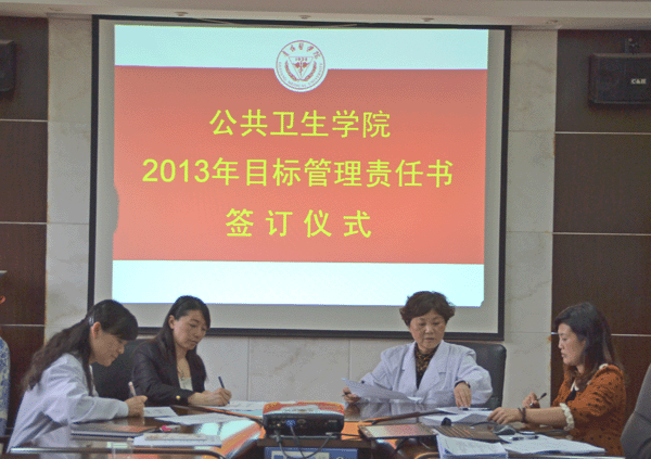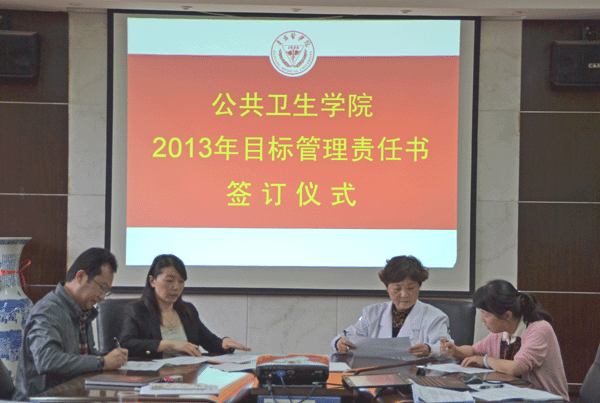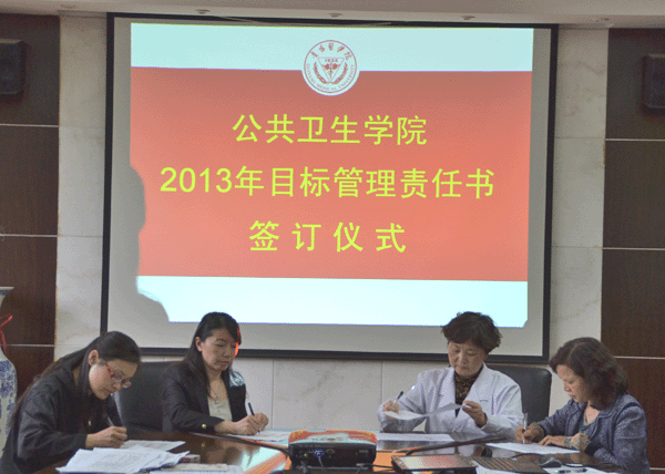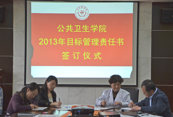 为认真贯彻落实《贵阳医公司目标管理办法》,强化目标责任考核抓手作用,进一步夯实目标责任,动员全院干部职工圆满完成2013年度各项目标任务,4月28日下午,公共卫生公司举行2013年目标管理责任书签订仪式。