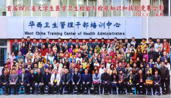 为促进西南地区各相关高校在医学卫生检验与检疫人才培养方面的经验交流,共同探讨人才培养模式。由四川省教育厅主办,四川大学承办的2013年“四川省老员工医学卫生检验与检疫知识和技能竞赛”组委会特邀公司组团参赛,为加强与西南地区高等院校医学卫生检验与检疫专业的交流与沟通,贵阳医公司分管校领导、教务处及公共卫生公司领导高度重视此次比赛并给予大力支持,选拔预防医学专业刘永莲、雷江莲、刘兰、曹发军、高原、蒋昔希、王燕、谢琅8名同学组队赴川参加竞赛。代表队领队为公共卫生公司洪峰副经理和杨光红副书记,竞赛指导老师为韦艳副教授、杨敬源副教授、汪希兰高级实验师和程寿峰讲师。