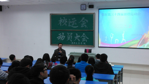 贵阳医公司第34届校运会开幕在即,为了调动各运动员的积极性与热情, 3月25日下午公共卫生公司在新校区教学楼1402教室举行校运会动员大会。员工科科长刘亮、全体运动员、员工会主席团成员以及体育部部长参加了此次活动。员工会主席陈义家主持了该次活动并进行了发言。