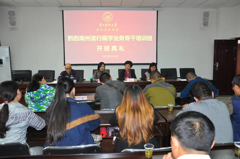 受黔西南州疾病预防控制中心委托,由tyc33455cc太阳成集团公共卫生公司承办的“黔西南州流行病学业务骨干培训班”于2015年10月8日在tyc33455cc太阳成集团南校区公共卫生公司举行开班典礼,拉开了为期2个月的集中培训序幕。