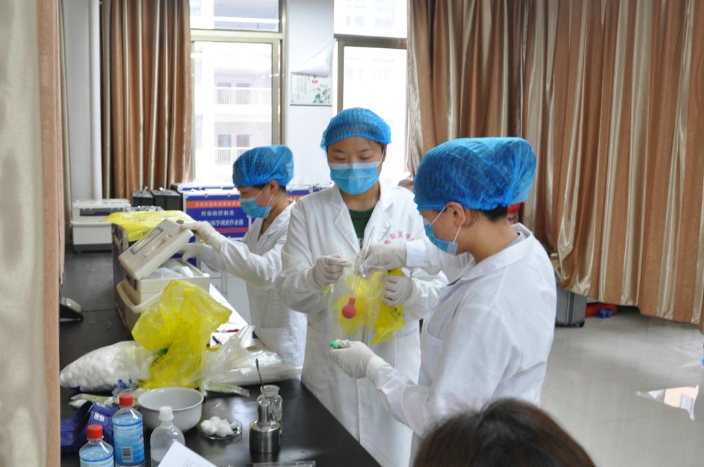 经过一天的激烈角逐,根据现场演练与回答问题综合评议,教工队的获奖情况为:流行病与卫生统计学科组的杨婷婷、蒋芝月和关菡荣获一等奖;实验室的秦旭、陈昌雪、宋磊,行政与实验室组合的刘亮、刘益宁、王祺荣获二等奖;行政科室的张强、陈峰峰、孙静,劳环卫和营养学科组的王文娟、潘莎、李俊良,卫生检验与检疫学科组的王俊丽、曹利雅、程寿峰荣获三等奖。员工队的获奖情况为:2014级卫生检验与检验专业的陈桃、林安事、杨聪荣获一等奖;2014级卫生检验与检验专业的陆邹红、唐锐晶、王丹和2013级预防医学专业的龚谨、陈静、杨晓演荣获二等奖;2013级预防医学专业的两支队伍贺丹、陈梦雪、叶晓微和郭芝艳、宋文君、石珠爱,2014级食品卫生与营养学专业的欧阳湖、成州琴、鲍佳志荣获三等奖。