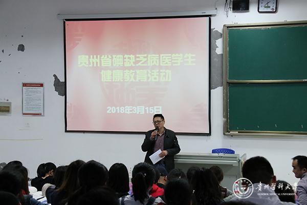 杨光红对此次健康教育活动的目的、意义作了介绍,并进行了动员。李杨则就活动的内容、组织形式及其必要性等进行讲解。参与健康教育活动的同学们接受了碘缺乏病防治知识的摸底调查与测试。调查结束后,省疾控中心周德梅副主任医师作碘缺乏病防治知识讲座,内容包括碘缺乏病的定义和危害、中国与全球的碘缺乏病流行形势、贵州省碘缺乏病历史与现状、碘缺乏病的防治方法等。