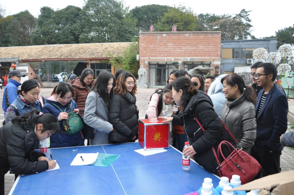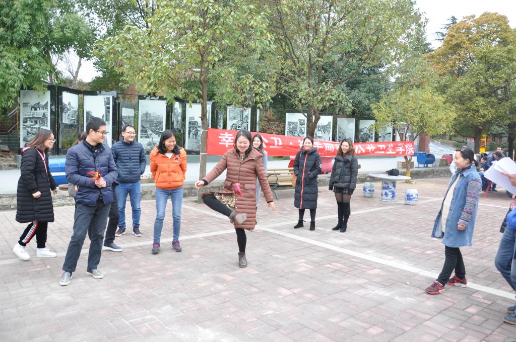 活动分三个阶段进行。首先,组织老师们到板桥艺术村艺术交流中心以及艺术家个人书法展进行参观与欣赏,让老师们去感受艺术的魅力。然后,组织开展了筷子夹弹珠、跳绳、踢毽子等趣味活动。冷风阻挡不了大家的热情,寒冷抹不去我们脸上的笑容。老师们积极参与、相互鼓励、相互追逐,在欢声笑语中角逐产生了一、二、三等奖,共18名老师获奖。最后开展幸运大抽奖活动,一片片惊呼声中,老师们纷纷抽中了自己心仪的小礼品。
