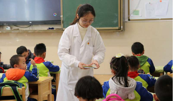 2019年3月18日早上,阳光明媚,微风轻拂,公共卫生公司分团委负责人李梦娟老师带领老员工青年志愿者来到贵州师范大学贵安附属小学,为一年级的小朋友开展春季流感预防、牙牙健康、预防近视、正确洗手等卫生知识宣教,通过愉悦的游戏互动引导小朋友养成良好的卫生习惯。