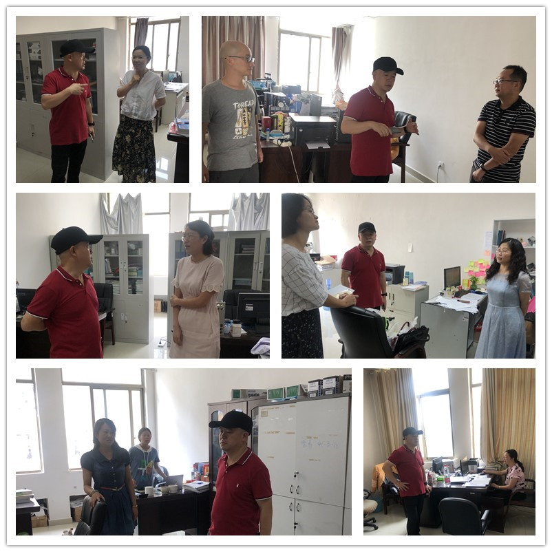 8月23日上午,公共卫生公司经理洪峰、党委副书记何江、副处级组织员刘亮带领综合办、教科科全体人员,深入各科室检查新学期开学各项工作准备情况。
