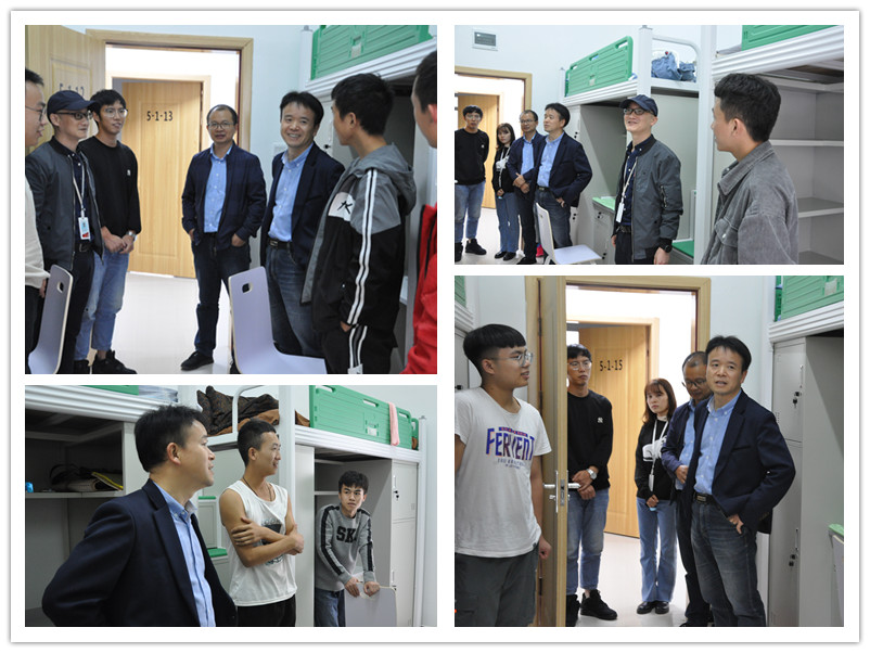 随后,洪峰一行到员工宿舍看望新生,并与新生亲切交谈,希望同学们能尽快融入大公司园,开启美好的大学时光,通过自己的不懈努力,成为一名德智体美劳全面发展的优秀公卫学子。