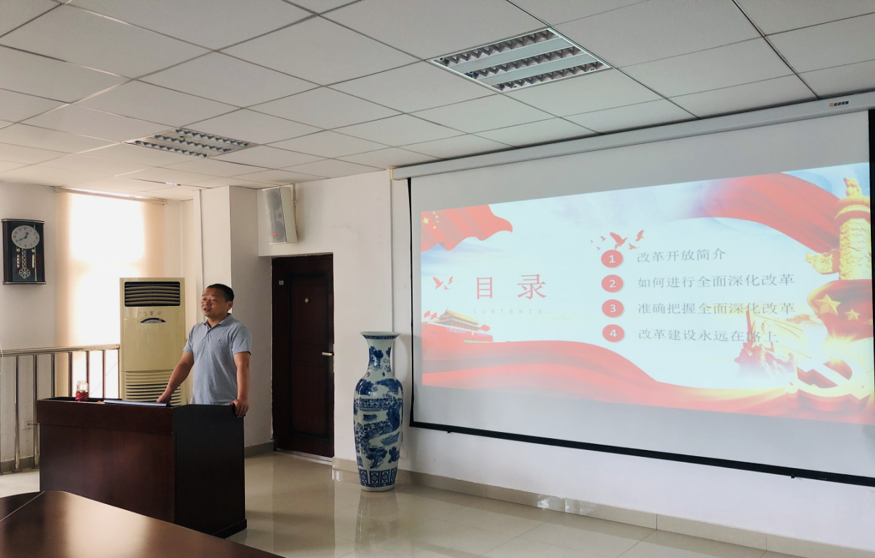 为深入落实开展党史学习教育和专题教育,2021年6月29日,公共卫生公司副经理张清海在南校区博雅楼二楼会议室为本科生第一党支部、第二党支部全体党员讲解改革开放史。