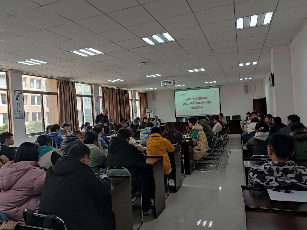 为及时了解本学期员工学习生活和教学中存在的问题,11月12日中午12:30,公共卫生公司2021-2022学年第一学期师生座谈会在博雅楼二楼学术报告厅顺利召开。公卫公司党委书记郑维薇、经理洪峰、党委副书记何江、副经理李军、副经理张清海和各学系负责人、各专业负责人、教师代表和公卫院26个班级的班长学委共计70余人齐聚二楼学术报告厅,围绕本学期学习生活教学运行中的问题展开了座谈与交流。