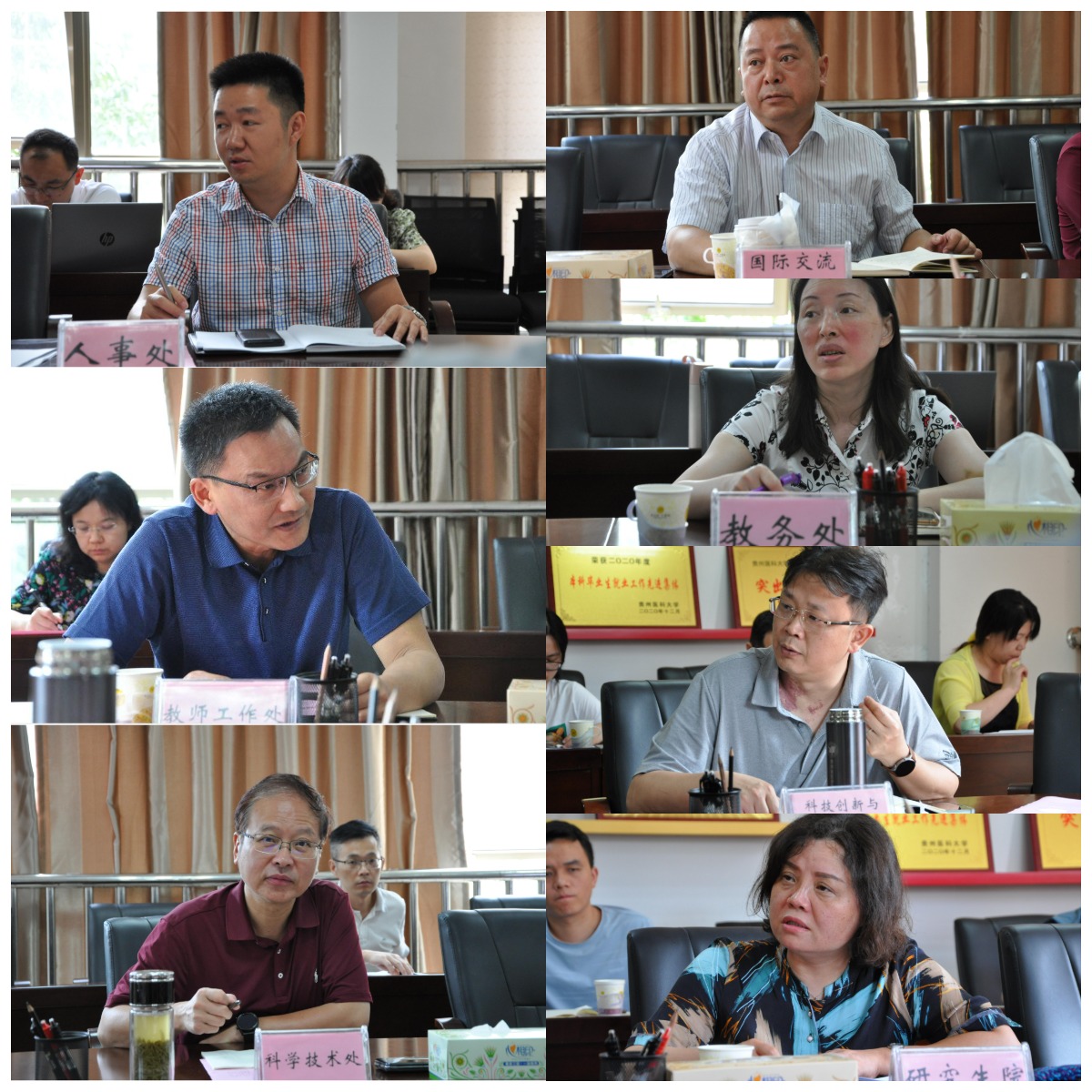集团研究生院、科学技术处、人事处、国际交流合作处、教务处、教师工作处、科技创新与产业发展处领导从职能处室工作领域就公卫学科(群)建设及增博扩硕存在的问题与不足等方面建言献策,并进行了深入交流与讨论。