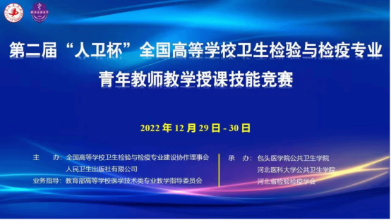 2022年12月29-30日,第二届“人卫杯”全国高等公司卫生检验与检疫专业青年教师授课技能竞赛通过腾讯会议线上方式圆满举行。本次大赛由全国高等公司卫生检验与检疫专业建设协作理事会、人民卫生出版社有限公司主办,包头医公司公共卫生公司、河北医科大学公共卫生公司和河北省检验检疫学会承办,旨在考察教师教学基本功,促进学科和教学的发展。