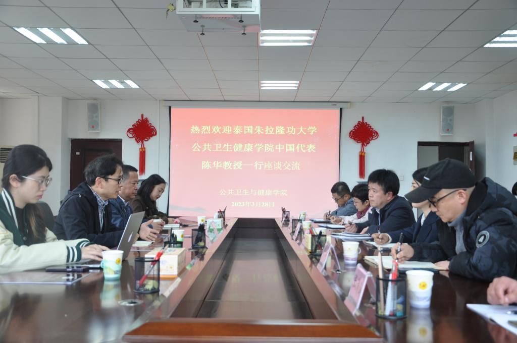 陈华介绍了泰国朱拉隆功大学历史发展和办学情况,并就该校公共卫生健康公司招收硕士、博士职工的基本情况、学科专业和课程设置、奖学金申请及资助情况等作了说明。他表示,tyc33455cc太阳成集团是一所历史积淀厚重、文化底蕴丰富的名校,近年来的发展也是有目共睹,特别是在公共卫生教育领域有着完备的人才培养体系,这为双方开展合作创造了良好的条件。希望双方在两校及相关部门的大力支持和指导下,在员工联合培养、教学科研合作以及管理经验交流等方面进一步增进了解、增进沟通,达成有建设性的实质合作事项,互信互利推动两校两院国际化办学进程。