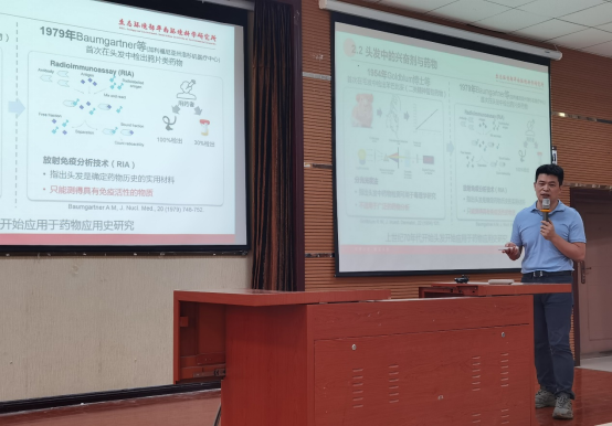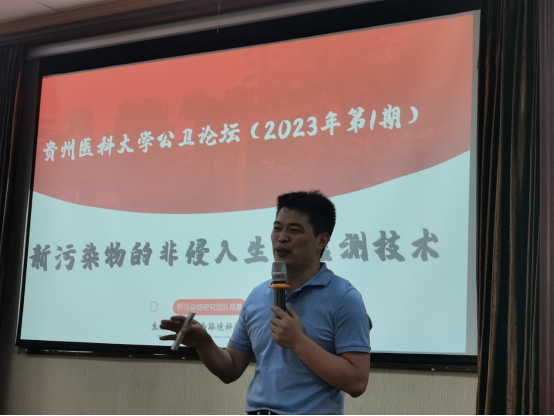 王俊丽首先代表公司对郑晶研究员的到来表示热烈的欢迎,并对郑晶研究员做了简要的介绍。郑晶研究员从新污染物的概念、研究背景、检测和监测方法构建及应用等全面的介绍了其科研团队近年的工作。此外,还生动地介绍了其个人求学经历、科研经历、科研思路、科研精神培养等心路历程和切身体会,他希望贵医公卫学子能够秉承优良传统、怀揣科研梦想、不负青春、努力拼搏,同时也欢迎贵医公卫学子报考和加入其科研团队,为新污染的监测和环境健康效应研究贡献力量。