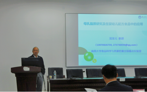 邓泽元教授的报告题目为“母乳脂质的研究进展及在婴幼儿配方食品中的应用”。他围绕母乳喂养在我国的现状、不同来源乳脂质分布的差异、甘油三酯的结构特异性对消化吸收的影响以及在婴幼儿配方食品中的应用进行了详细讲解。