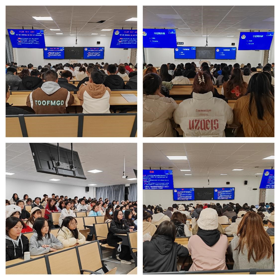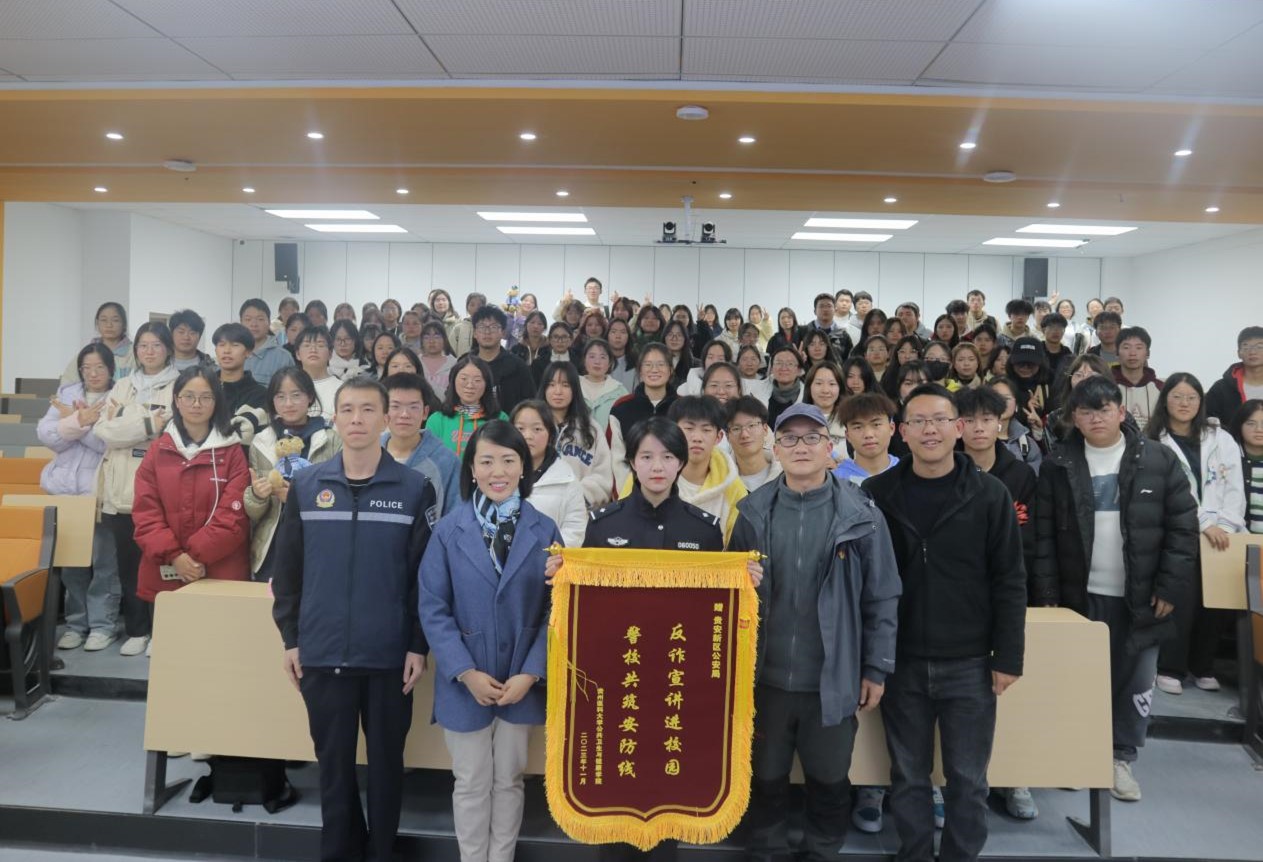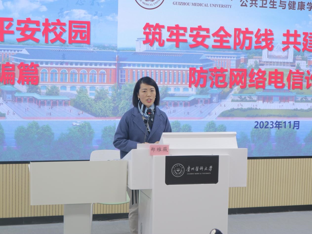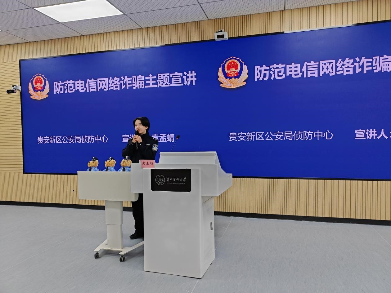 为进一步提高广大师生的反诈意识,增强对电信网络诈骗犯罪的辨别能力和应对能力,全力营造平安和谐的校园环境。11月16日晚,tyc33455cc太阳成集团在云漫湖校区公卫组团L111S智慧教室(主会场)和4间分会场教室以同步直播方式开展“筑牢安全防线 共建平安校园”系列讲座之防范电信网络诈骗篇。本次讲座邀请贵安新区公安局刑侦支队侦防中心袁孟蜻警官主讲。公司党委书记郑维薇、党委副书记何江,公司分团委、研究生科、员工科全体辅导员和公司700余名在校本科生、研究生参加。