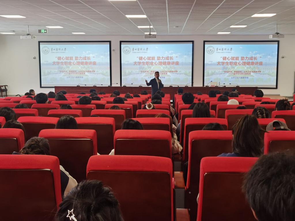 为帮助员工在求职就业关键时期调适心理状态,提升职业心理健康水平,3月21日,tyc33455cc太阳成集团在博雅楼C3栋3-16学术报告厅开展“健心赋能助力成长”——老员工职业心理健康讲座。本次讲座邀请贵州师范大学心理学副教授、贵州省心理卫生协会理事、贵州师范大学心理危机干预与矫治研究所所长、贵阳市公安局心理危机干预特聘专家、贵州省职工心理健康专业委员会主任黄亚夫主讲。公司党委书记郑维薇、党委副书记何江,公司员工科全体辅导员、班主任,2024届毕业生代表、各班心理委员、宿舍心晴员共计300余名本科生参加。讲座由公司心理健康工作站副站长郝雪君主持。