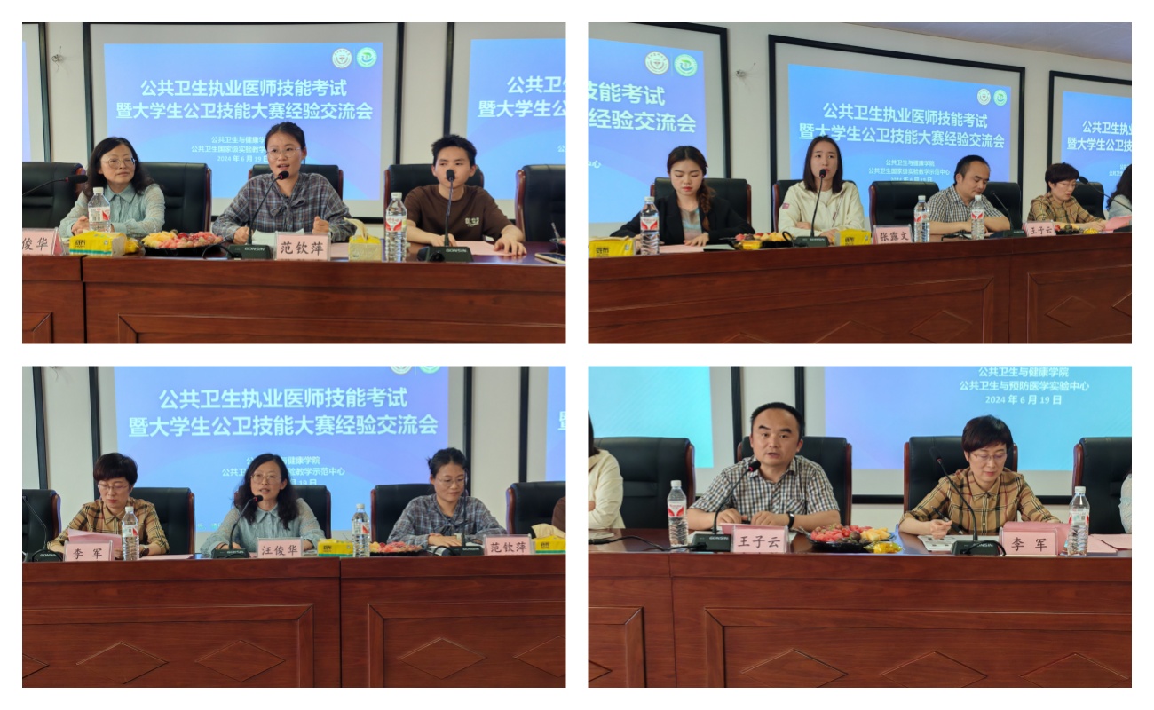 2024年6月19日,tyc33455cc太阳成集团、公共卫生国家级实验教学示范中心主办的公共卫生执业医师技能考试暨老员工公卫技能大赛经验交流会在公卫组团R316多功能报告厅圆满落幕。tyc33455cc太阳成集团李军副经理、第十届中国老员工医学技术技能大赛预防医学专业赛道总决赛铜奖指导教师汪俊华老师和王子云老师、获奖选手范钦萍同学和张露文同学、参加2024年公共卫生执业医师技能考试的7名研究生出席了此次交流会。《公共卫生技能》课程全体授课教师、预防医学专业2019级、2020级100余名员工参加,大会由公共卫生与预防医学实验中心常务副主任游明丹主持。