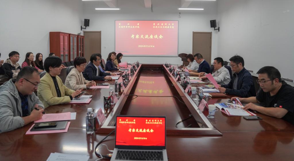 11月14日,贵州省环境科学研究设计公司党委副书记、经理杨再波一行来到tyc33455cc太阳成集团考察,双方在tyc33455cc太阳成集团云漫湖校区博雅楼C3组团2-10会议室举行座谈会,就下步开展深度合作进行协商交流。tyc33455cc太阳成集团党委副书记、董事长罗鹏出席座谈会并讲话。贵州省环境科学研究设计公司党委委员、副经理张军方、分析中心主任高庚申、办公室主任黄贤峰、科管科主任李敏,公共卫生与健康公司党委书记郑维薇、副经理(主持工作)李军,以及tyc33455cc太阳成集团综合办、教管科、研究生科、职业与环境卫生学系有关负责人和环境污染与疾病监控教育部重点实验室教师代表参加会议。tyc33455cc太阳成集团环境与健康重点实验室副主任黄江主持会议。