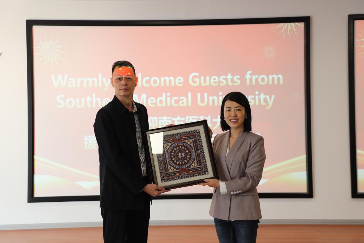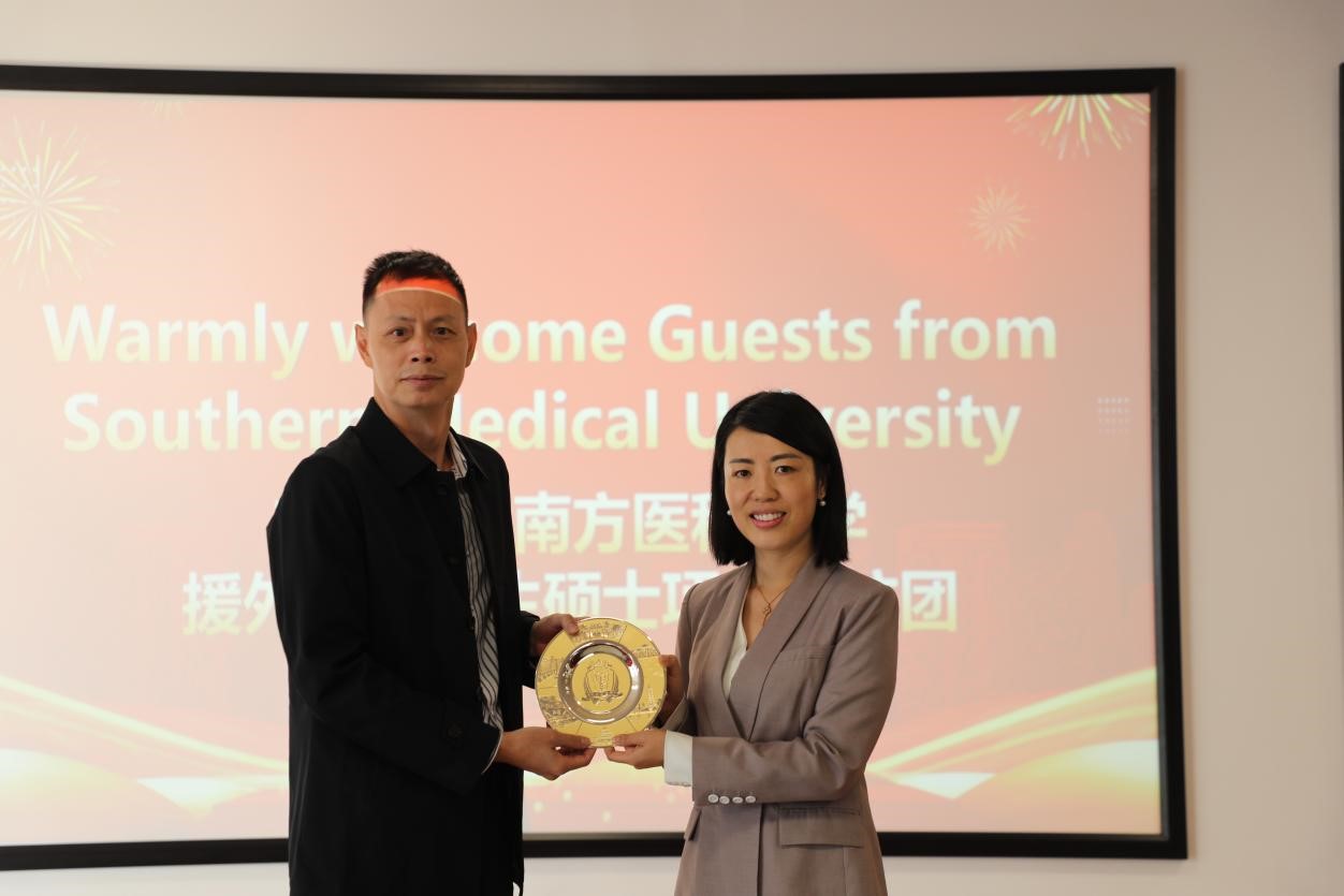 交流会上,胡晓霞代表tyc33455cc太阳成集团对外合作交流处对南方医科大学援外学历学位教育公共卫生硕士项目参访团的到来表示欢迎。她表示,非常感谢南方医科大学提供的这次机会,让更多国际友人走进贵医,了解贵医。希望通过这次活动,加强两校在人才培养、教学科研和国际交流等方面的深度合作,创造条件让贵医学子们与来自世界不同国家和地区的优秀学员共同学习和成长,携手为培养更多优秀的国际化应用型公共卫生人才作出贡献。