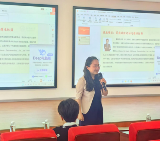 讲座中,靳光付教授将其深厚的理论造诣与前沿的科研实践相结合,系统阐述了胃癌发生的分子机制,并重点剖析了胃癌预防的关键节点。他通过翔实的数据与临床案例,深入解读了遗传性胃癌的筛查策略,同时强调了健康生活方式对降低全肿瘤发病风险的循证依据。