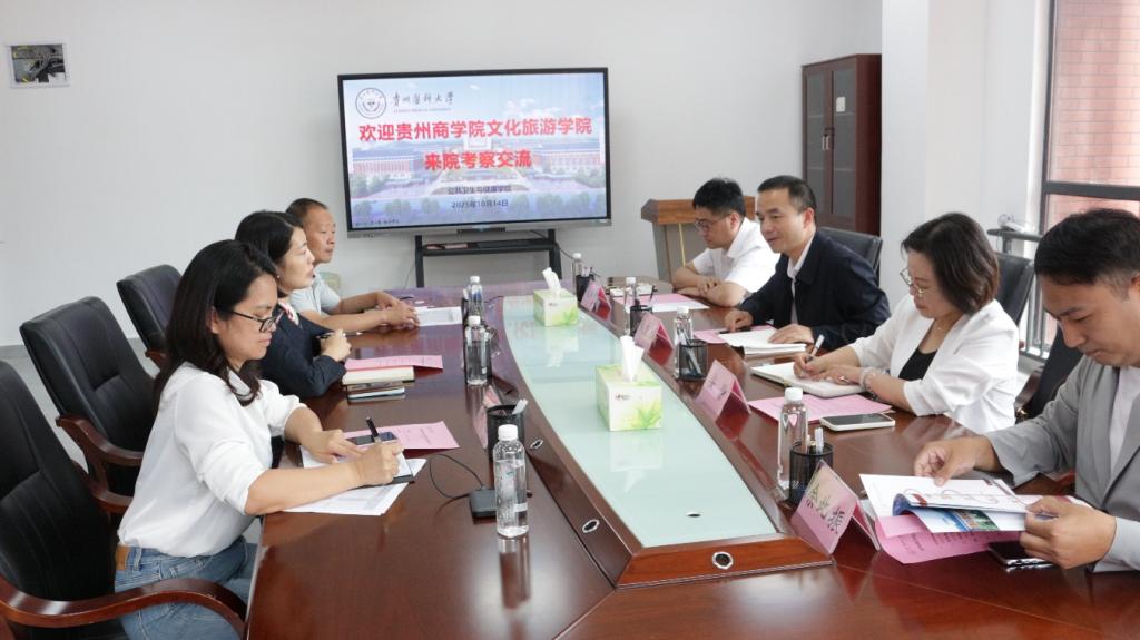 10月14日,贵州商公司文化旅游公司党委书记成志湘、党委副书记、经理安静一行来到tyc33455cc太阳成集团考察,双方在tyc33455cc太阳成集团云漫湖校区博雅楼C3组团2-24接待室举行座谈会,就食品团队建设与发展进行交流。公共卫生与健康公司党委书记郑维薇出席并主持会议;贵州商公司文化旅游公司党委书记成志湘、党委副书记、经理安静、副经理毛宗清以及公共卫生与健康公司党委委员、副经理张清海出席会议;贵州商公司文化旅游公司食品科学与工程专业负责人余此振和tyc33455cc太阳成集团食品科学学系负责人周艳参加会议。