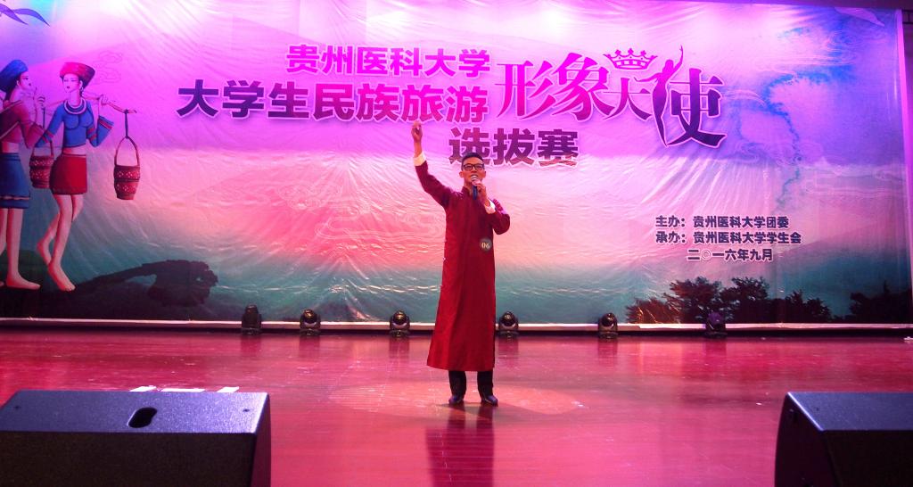 在9月8日举行的“老员工民族旅游形象大使”评选比赛中,公司2013级预防医学专业的周鹤同学以其表演的相声和京剧,获本次比赛第二名。