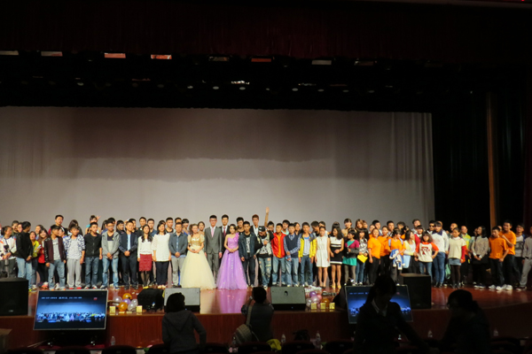 晚会在一曲激情洋溢的《海阔天空》中拉开帷幕,紧接着群舞《小苹果》以快节奏的步调展示了员工们活泼、积极的风貌。接下来的男女生浓情对唱、双簧等节目的精彩表演迎来观众的阵阵掌声,节目进程中穿插的游戏环节更是让观众们笑声连连。随后的《自行车之舞》、《天竺少女》、《故宫的记忆》等一系列节目的相继演出,加上 “校园十佳歌手”入围选手的助阵,将晚会现场的气氛推到高潮。最后,晚会在一场美轮美奂的走秀表演中完美落幕。