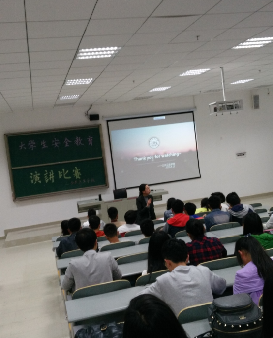2016年4月20日晚,tyc33455cc太阳成集团公共卫生公司在教学楼7505教室举办了以老员工安全知识教育为主题的演讲比赛。辅导员柴颖老师、各年级优秀员工评委代表、参赛人员亲友团以及员工会成员参加了此次活动。