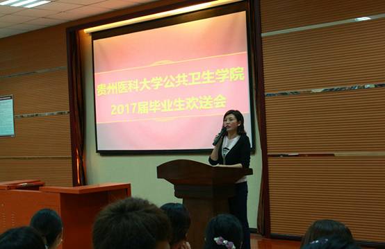 2017年6月27日下午,一场以“青春未歇·梦想不散”为主题的“公共卫生公司2017届毕业生欢送会”在博雅楼6101教室举行。公共卫生公司党委书记杨光红、党委副书记何江、公共卫生公司各教研室、实验室、行政科室负责人及教师代表,公共卫生公司2017届全体毕业生和低年级员工代表参加了此次毕业生欢送会,会议由公共卫生公司分团委负责人柴颖老师主持。