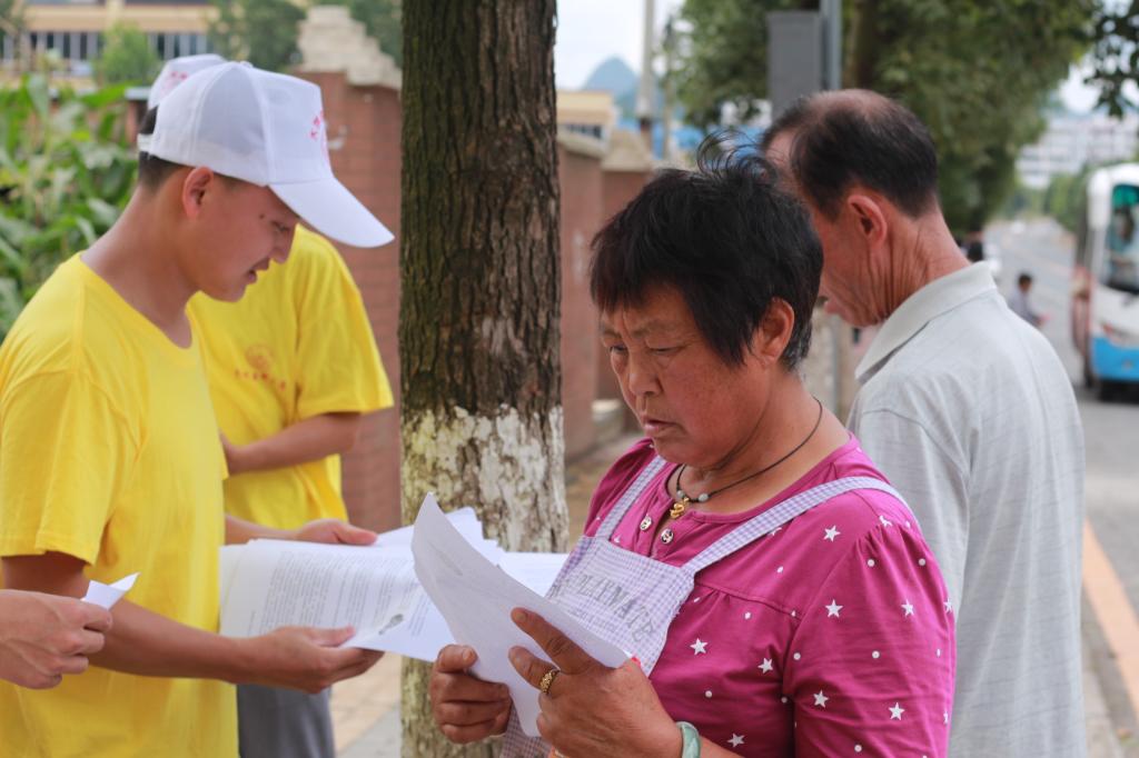 在社会实践队员设置的宣传服务处,公司社会实践队员对前来咨询的村民细致的讲解,对有疑问的村民耐心的解答,同时还为前来咨询的村民提供了个性化的饮食建议。