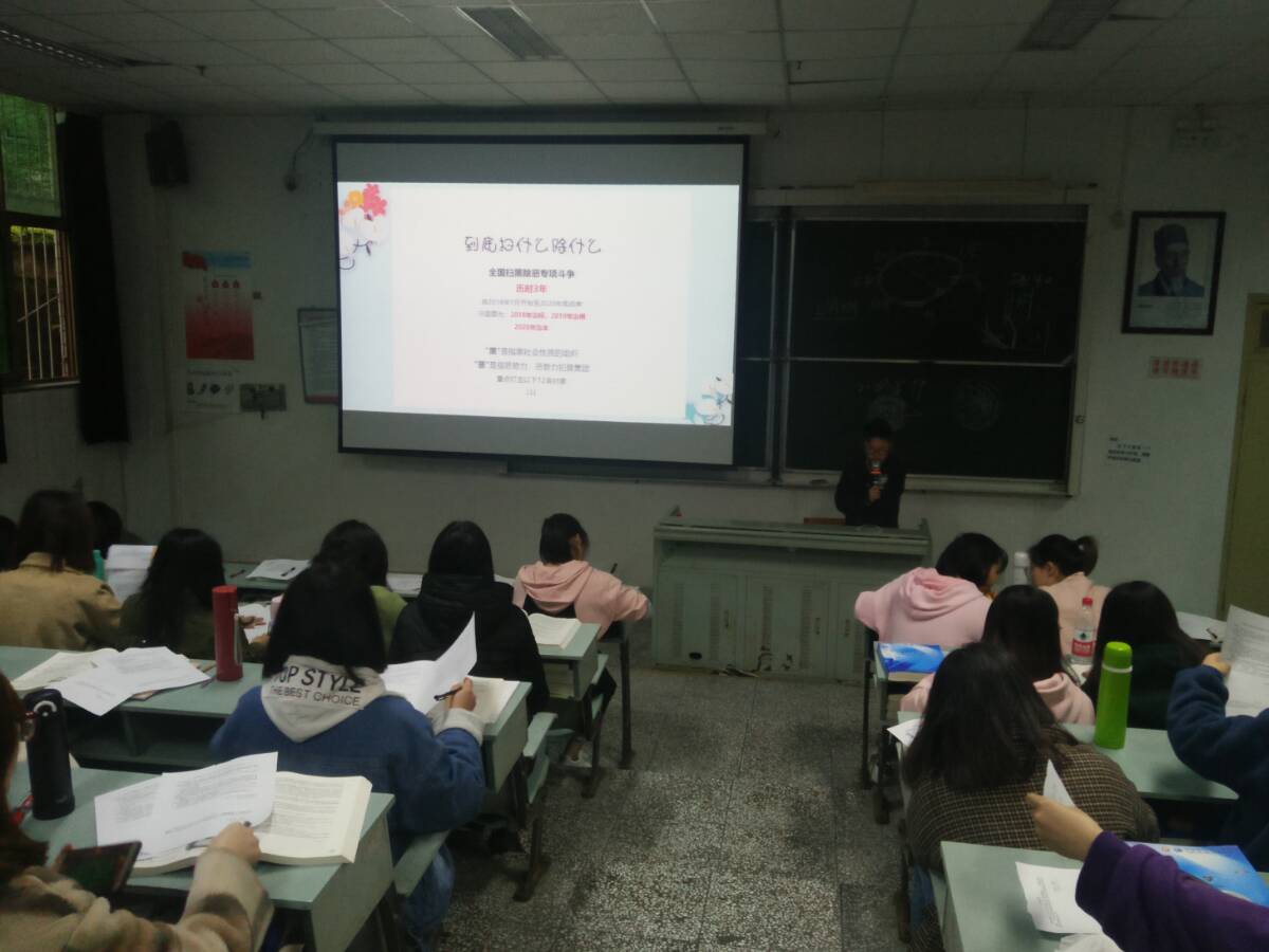 主题班会上,各年级辅导员通过播放视频、PPT展示等形式,引导同学们认识黑恶势力的实质、危害和开展扫黑除恶行动的重大意义,让同学们深刻领会到开展扫黑除恶专项斗争是事关人民安居乐业、社会安定有序、国家长治久安的重大举措,是让我们的校园更安全、社会更纯净的必要举措。动员同学们积极参与到扫黑除恶专项行动中来,为创建平安和谐社会献出一份力量。