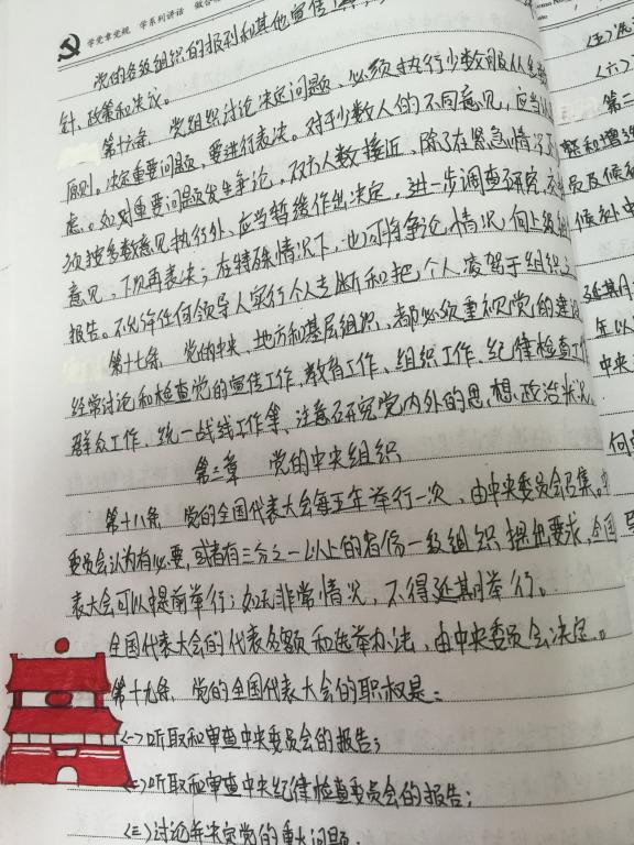 公共卫生公司全体党员以手抄党章的方式,加深了对党的纲领的理解,以遵守党章为标准,深思感悟,自觉按照党员标准规范言行,真正做到知行合一,更加坚定了共产主义理想信念,进一步提高了党性觉悟。
