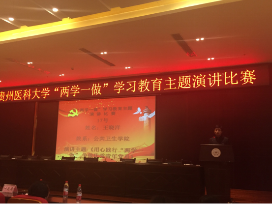 公司2015级公共卫生硕士(MPH)王晓洋同学,在公司举办的“两学一做”学习教育主题演讲比赛中,经过激烈角逐,最终以9.82分的优异成绩获得此次演讲比赛一等奖。