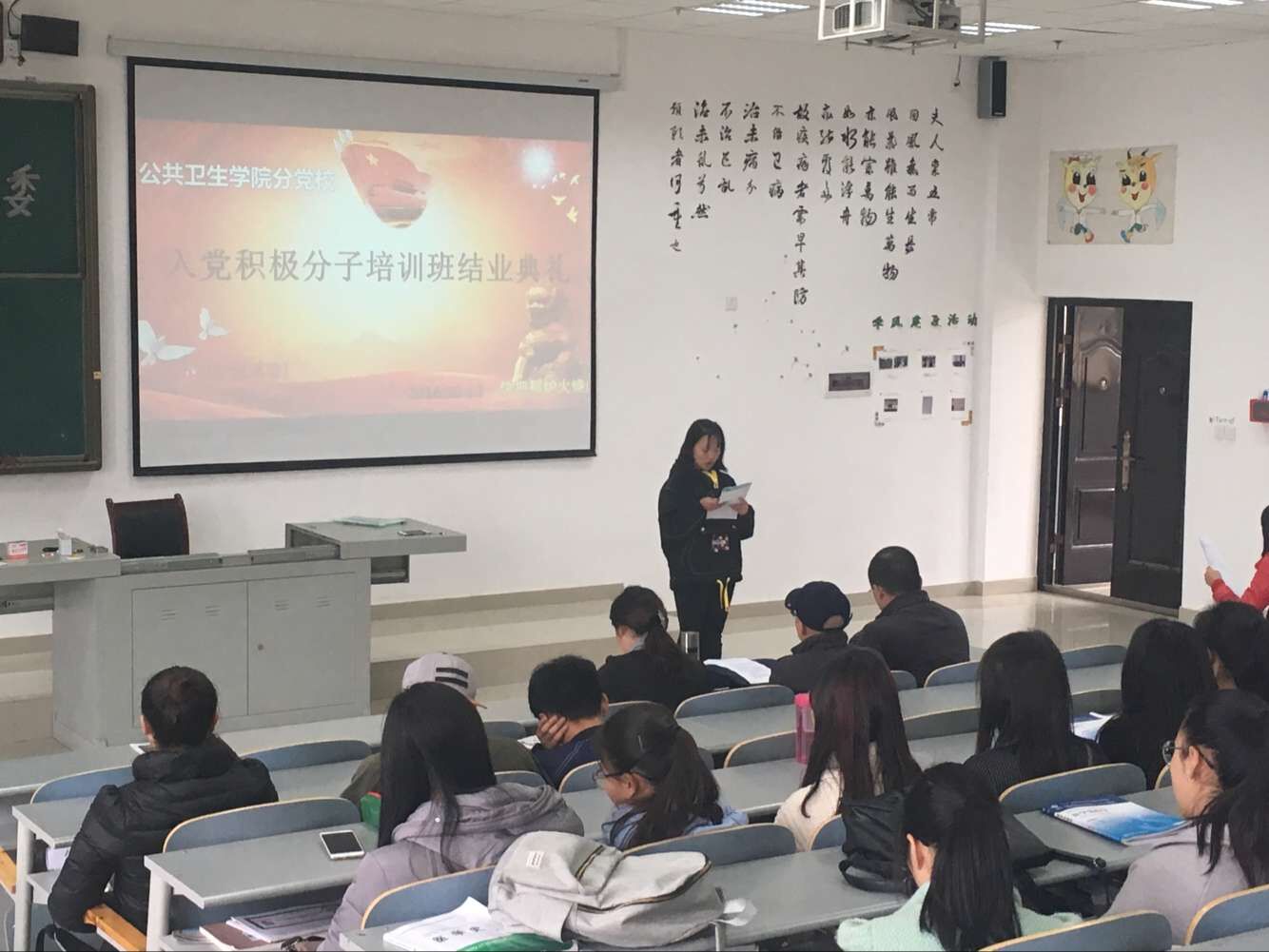首先,孙静对本次党课培训的情况进行了总结并宣读了此次培训结业学员名单和优秀学员名单。本期入党积极分子培训班得到了公司党委组织部和宣传部的大力支持和公共卫生公司党政领导的高度重视,公司党委组织部部长李兴、宣传部部长杨毅、宣传部副部长姚思勤、公共卫生公司党委书记杨光红、经理洪峰(党委委员)、公司党委副书记