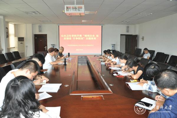 9月5日,公共卫生公司在博雅楼二楼会议室开展了“感悟历史 坚定信念 干净担当”主题教育活动。公共卫生公司党委书记杨光红主持,公共卫生公司党委委员、各支部书记、各支委及部分教研室负责人参加。