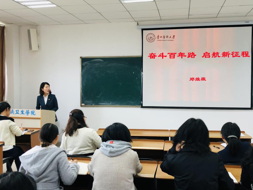 10月19日,公共卫生公司党委书记郑维薇为公共卫生公司教工第二党支部、研究生党支部全体党员作题为《奋斗百年路,启航新征程》的“七一”重要讲话精神专题宣讲。