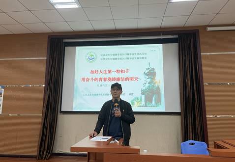 最后,何江以《扣好人生第一粒扣子,用奋斗的青春浇铸廉洁的明天》为题,为全体党员上了一堂生动的廉洁教育党课。通过观看廉洁教育视频和警示教育案例,强调扣好人生和事业发展第一粒扣子的重要意义,并提出四点要求:一是要坚定理想信念,补足精神之钙;二是要重视党性修养,树立正确的“三观”;三是要严守政治纪律,时刻牢记党纪国法红线;四是要以案为鉴,警钟长鸣,时刻审视自己。希望全体毕业生党员在新的起点和征途中常修从业之德、常怀律己之心、常思贪欲之害、常戒非分之想,永葆共产党人的政治本色,用奋斗的青春浇铸廉洁的明天,奋力谱写无愧于党和国家培养、无愧母校和师长的教诲、无愧于时代和青春的人生篇章。