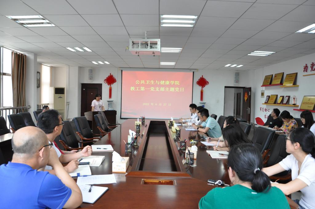 6月27日,公司教工第一党支部在博雅楼2楼会议室开展6月份主题党日,会议由支部副书记康晶晶主持。