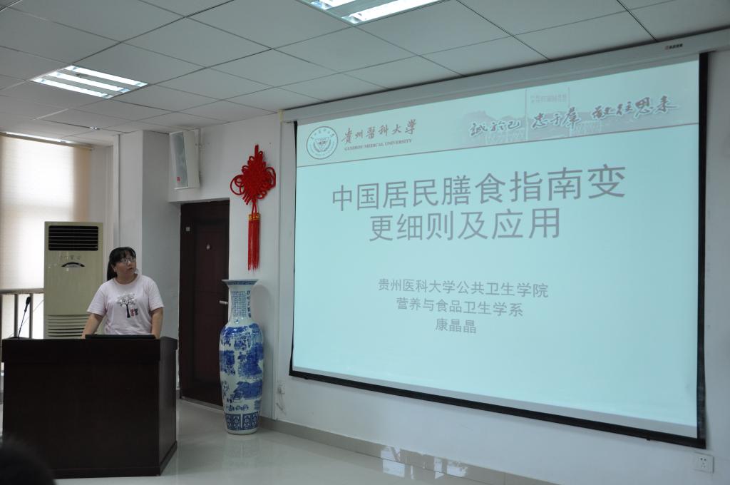 近年来,贵州省委、省政府高度重视卫生健康工作,制定实施《“健康贵州2030”规划纲要》《贵州省国民营养计划(2018-2030年)》,持续提升人民健康水平。公司贵州省特色生态食品营养与健康科技创新人才团队,积极开展健康宣传,引导群众形成良好饮食风尚,促进健康知识融入日常生活。教工一支部《党建业务促融合,实干担当谈发展》系列讲座第一讲,由营养与食品卫生学系康晶晶博士主讲,对新版中国居民膳食指南(2022版)进行解读。