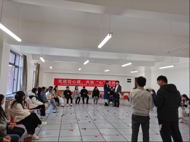 为深入学习贯彻党的二十大精神,加强师生心理健康建设,引导师生正确缓解压力与情绪,提高自我效能,12月12日,公司教工第二党支部、研究生第一党支部,医学人文公司教工第二党支部、员工党支部联合在云漫湖校区人文组团善思楼2-24团辅室开展“党建促心建,共筑“心”防线”的主题党日活动。公共卫生与健康公司党委书记郑维薇、经理洪峰,医学人文公司党委书记江宣成及双方支部党员参加活动。主题党日活动由江宣成主持。